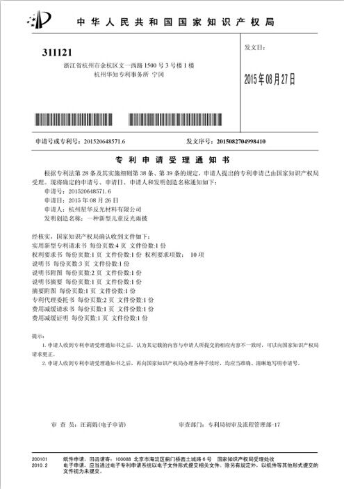 產(chǎn)品的用途:本外觀設(shè)計(jì)產(chǎn)品用于反光布的反光制品;